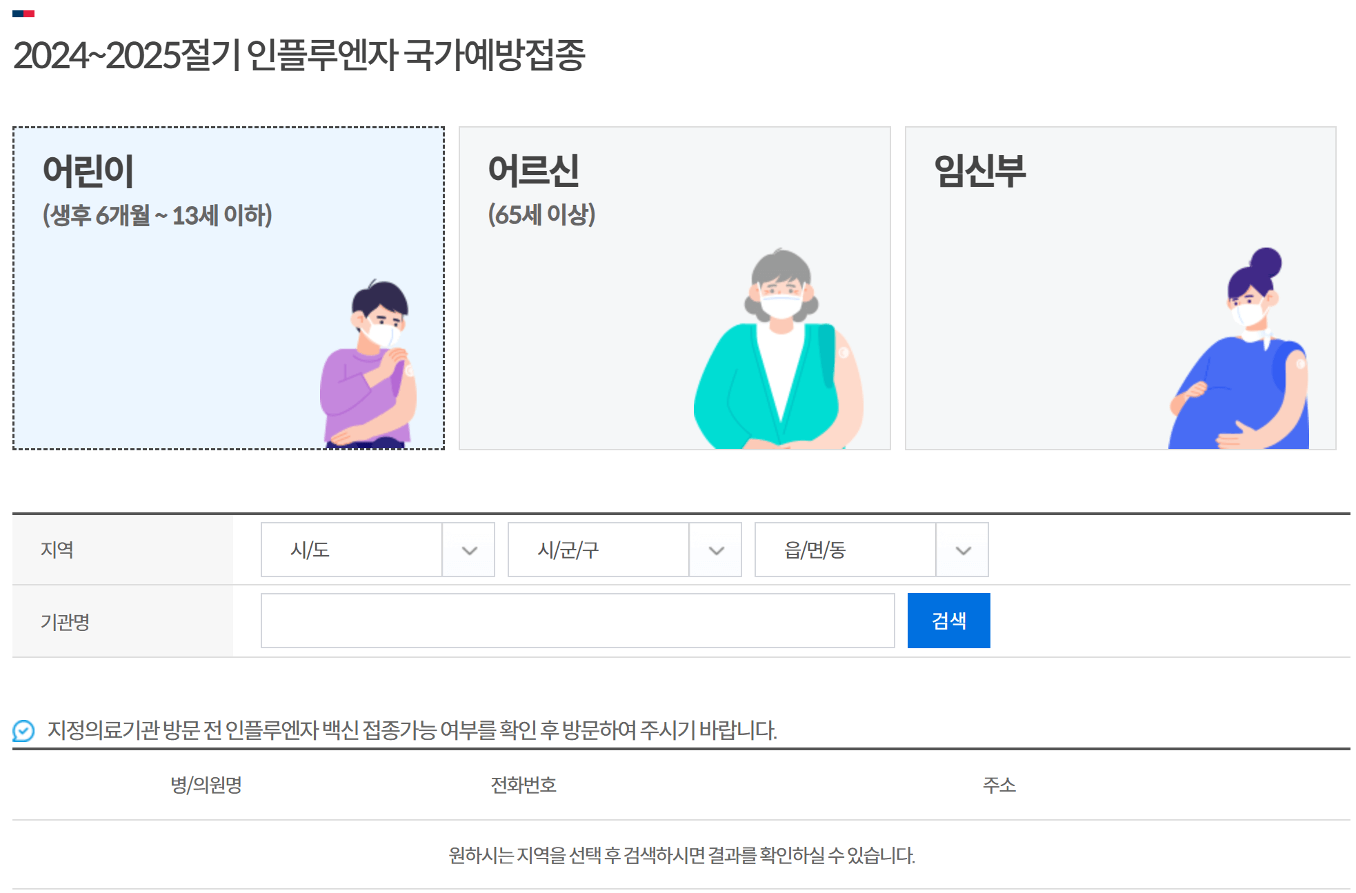 | 독감 무료접종 대상 | 생후 6개월 ~ 13세 어린이 (2011년1월10일 ~ 2024년8월31일) |