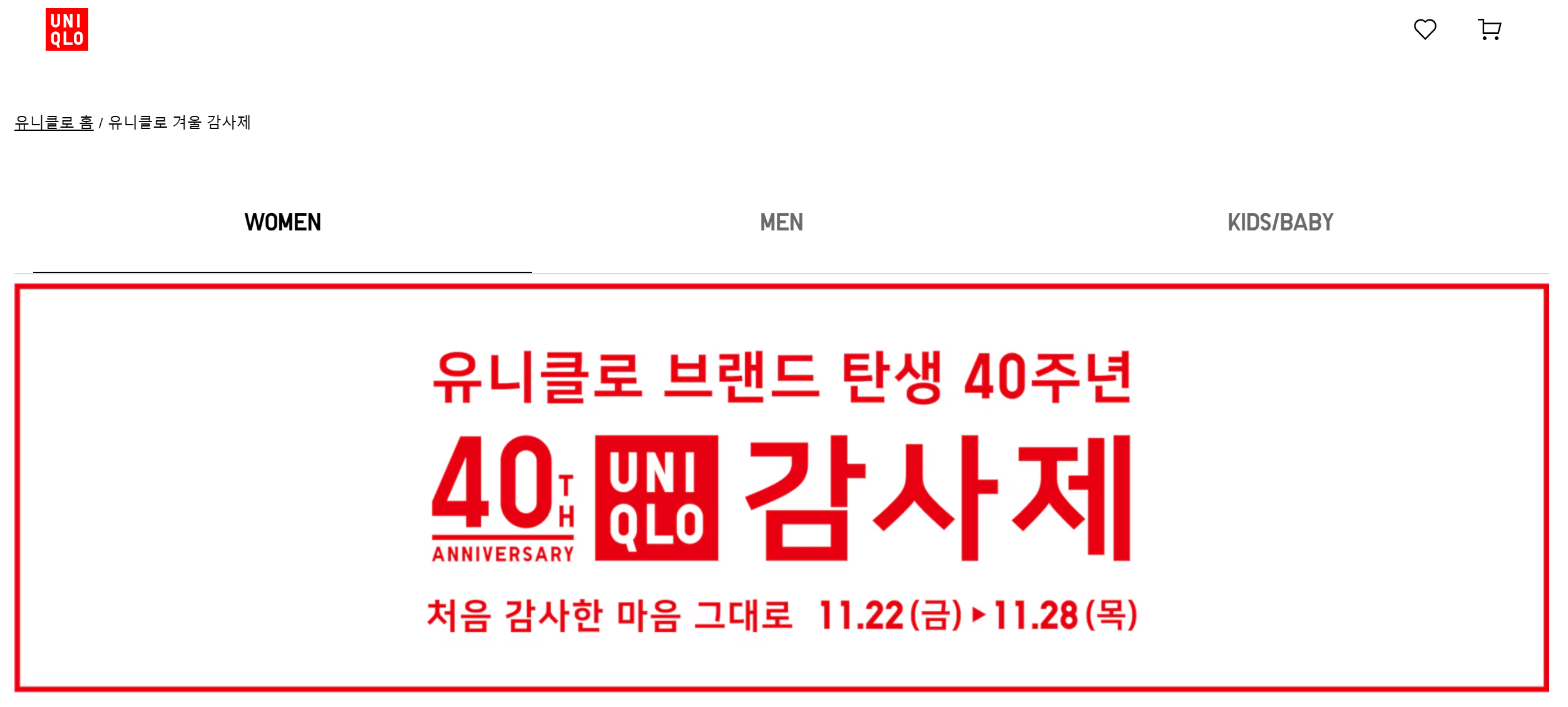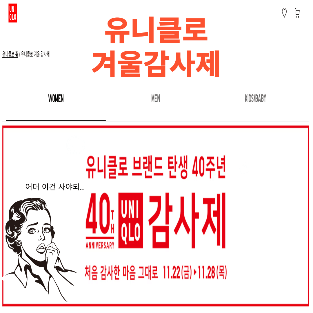 유니클로가 탄생 40주년 감사제를 시작합니다. 11월 세일기간을 놓쳤던 분들도 이번 감사제를 통해서 유니클로를 대표하는 상품들을 착한 가격으로 구매할 수 있는 기회이기에 놓치지 마시고 아래 글 보시고 구매하시기 바랍니다.